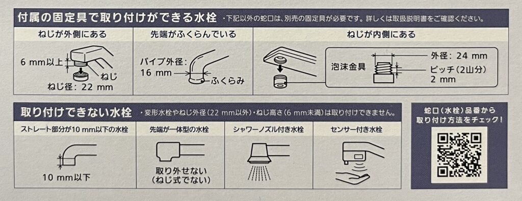 取付方法は各御家庭に設置されている水栓によって少し変わってきます。