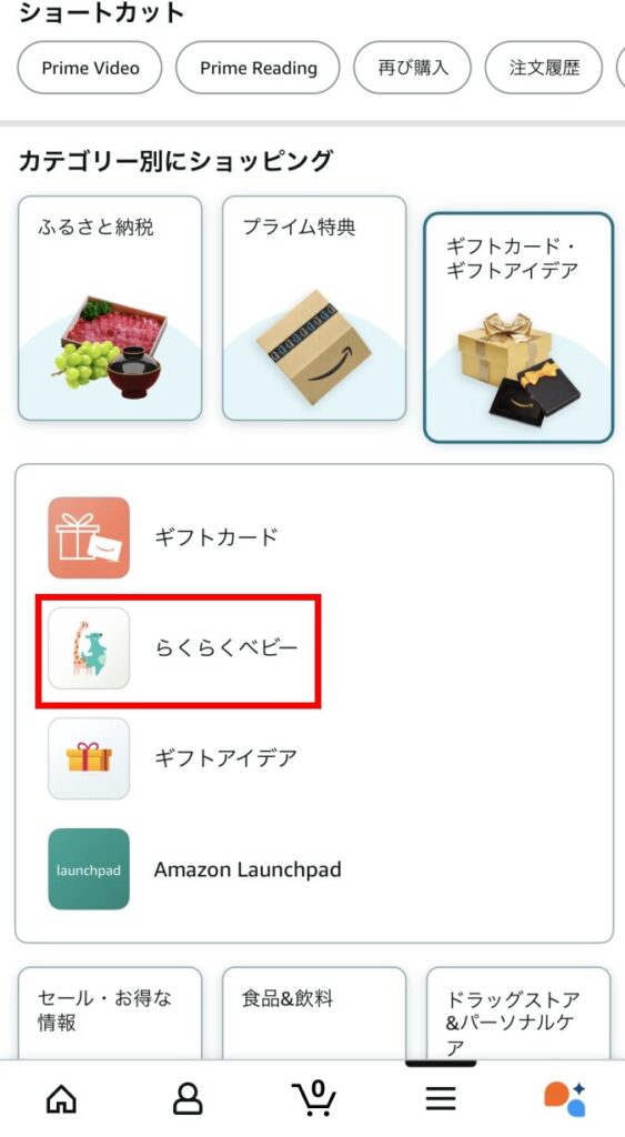 - らくベビ割引・・・ベビー用品が5%OFF(プライム会員なら10%OFF)