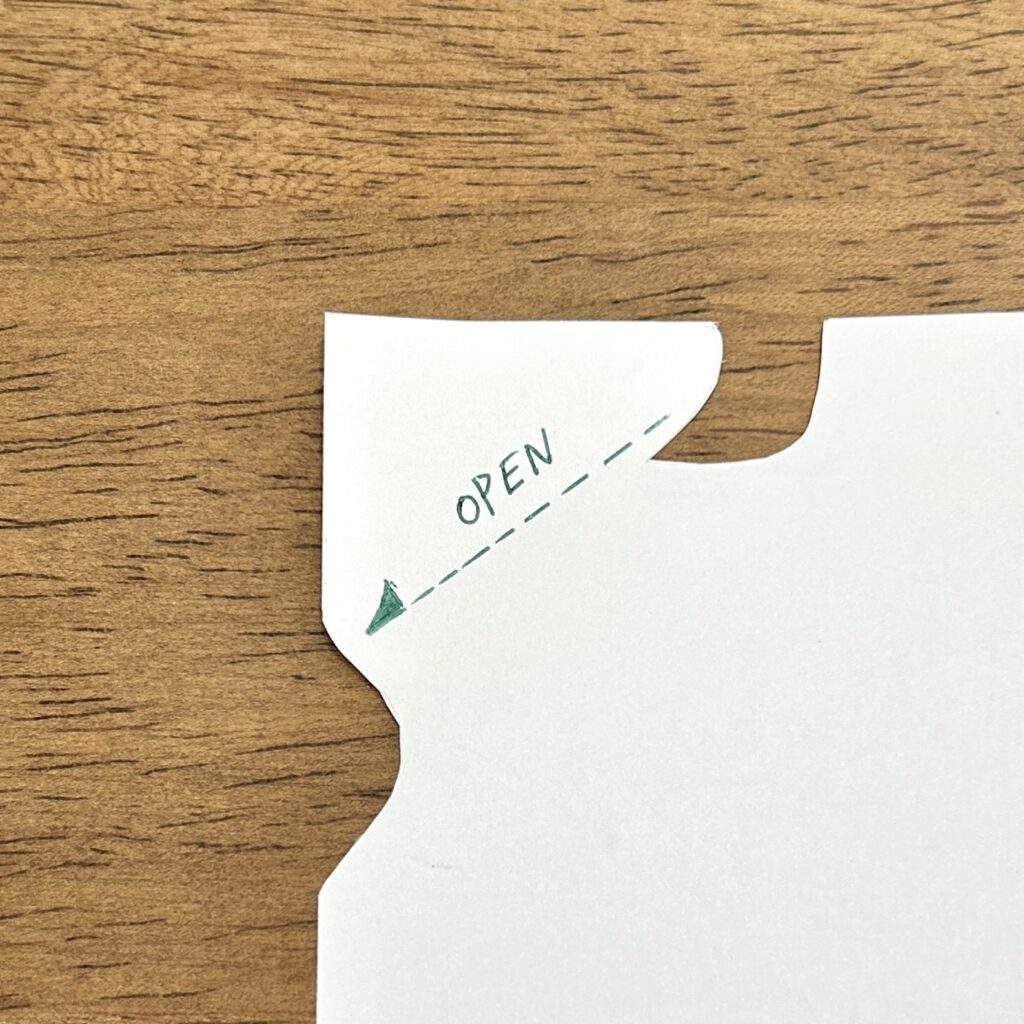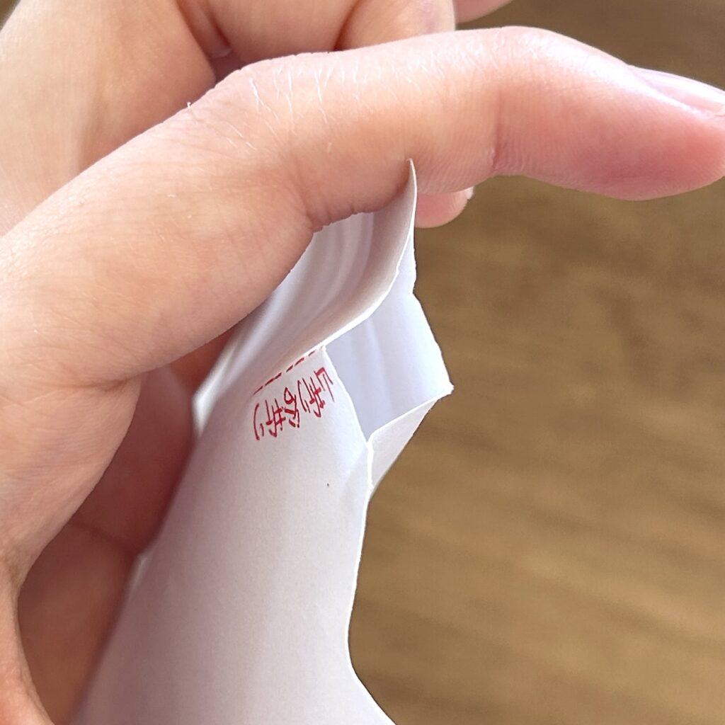 あまり長く切り込みを入れると、注ぎ口が大きくなってしまい、こぼれる恐れがあるので短めに入れると良いのではないかと思っています。