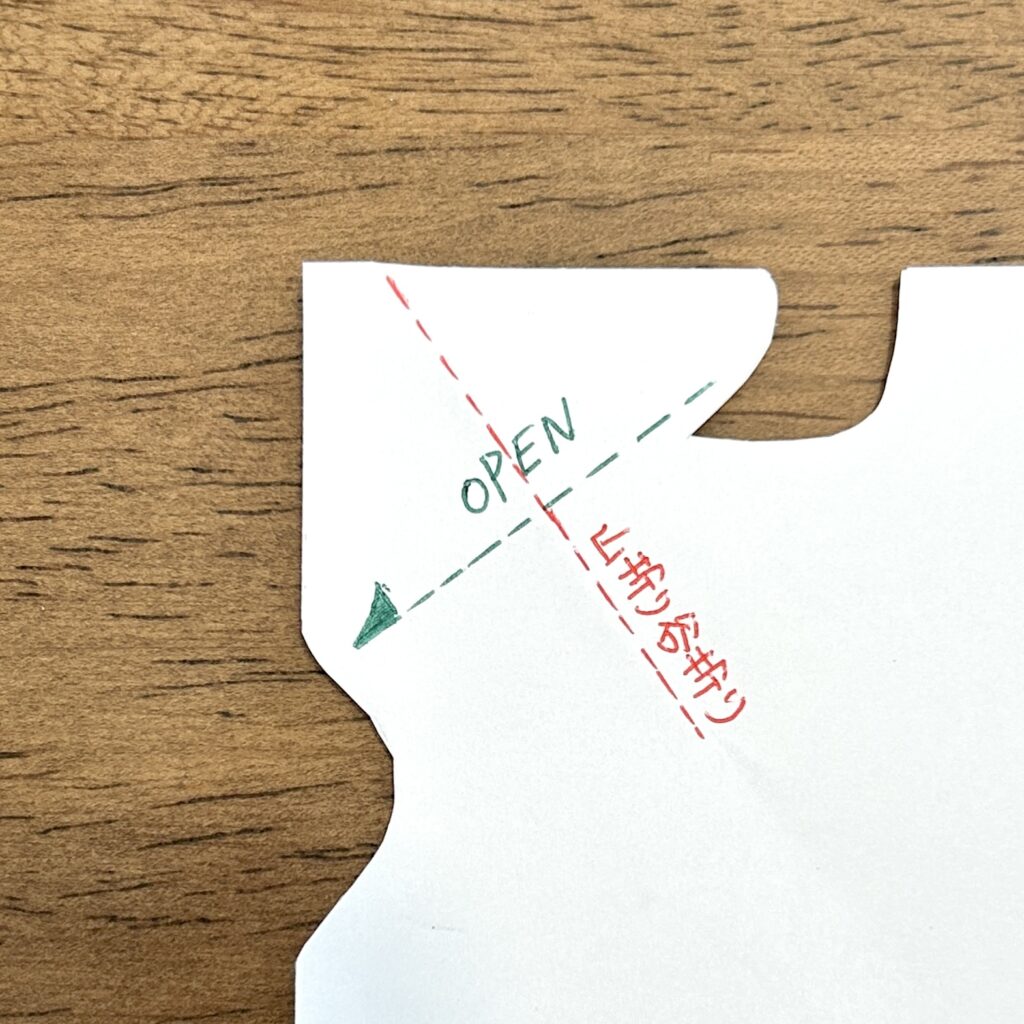 カットする前に折り目を付け、切り口を四角く整える